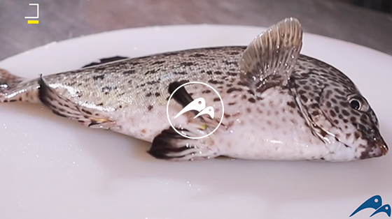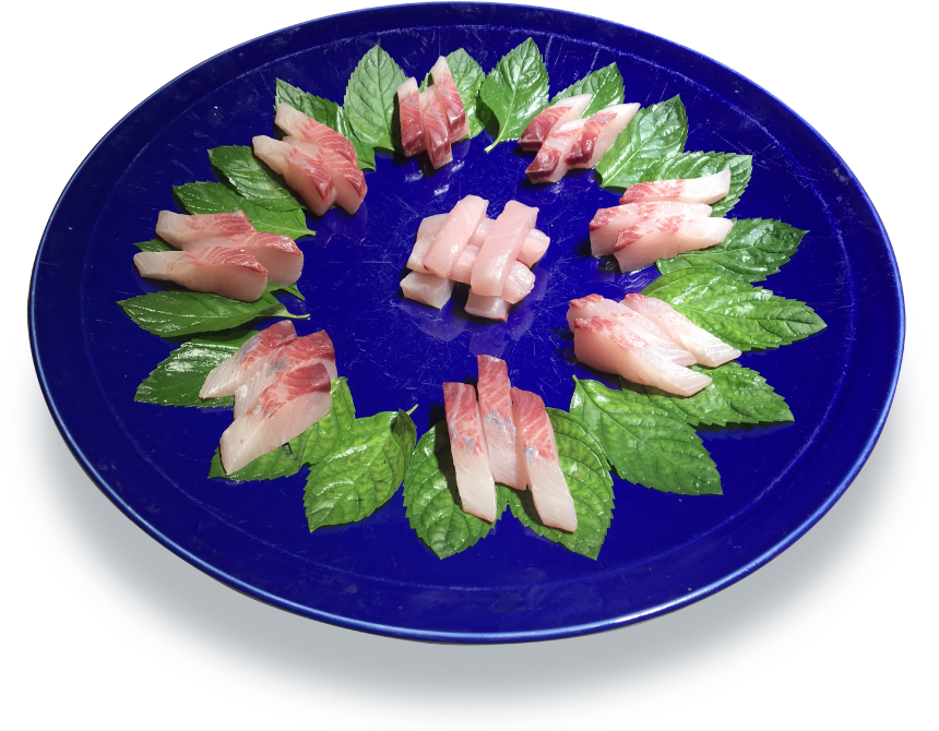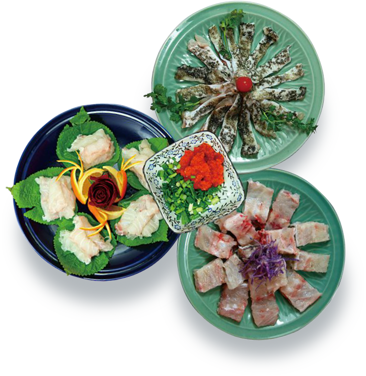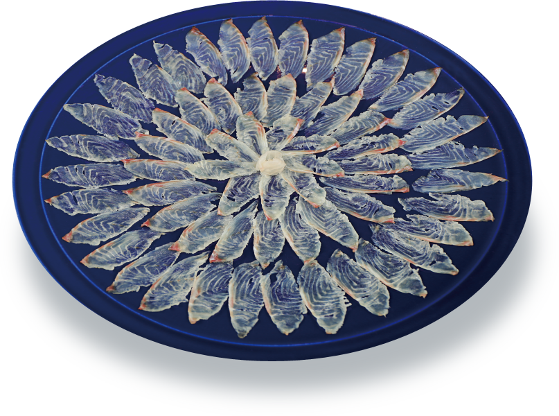 明波斑石鲷精心处理干净,片下鱼骨和鱼皮,片成1毫米左右厚薄均匀,大小一致的鱼片,整齐摆放于盘内,食用时配以辣根汁蘸食即可。 菜品特点:口感细腻、回味清香。