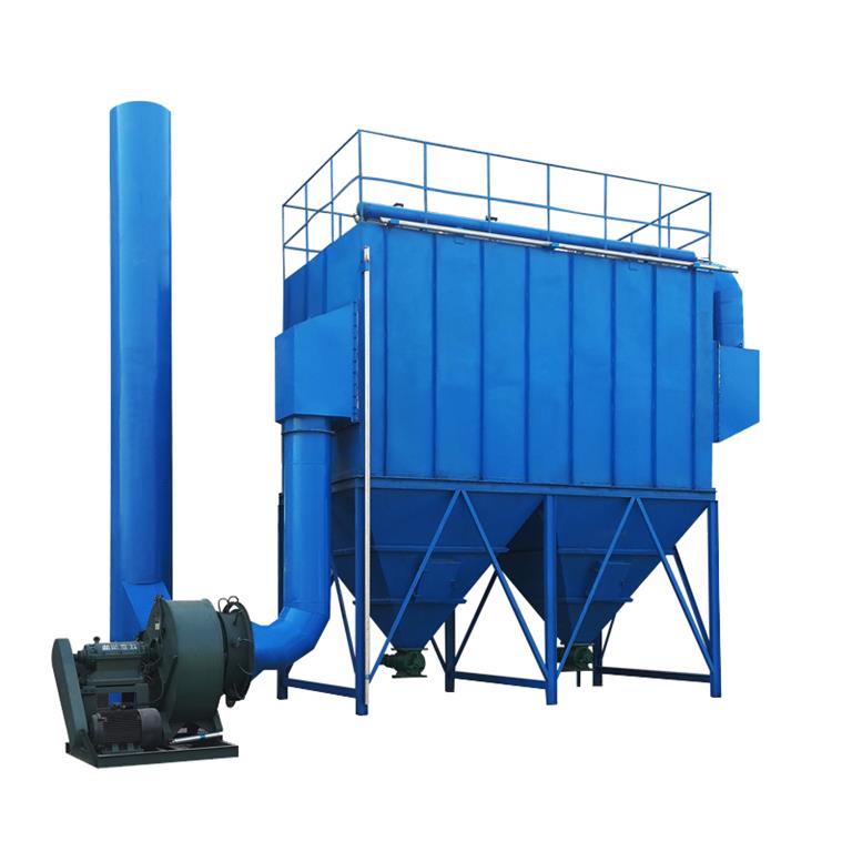 除尘器主要由上箱体、中箱体、进风通道、支架、滤袋及喷吹装置,卸灰装置等组成。含尘空气从除尘器的进风通道进入各室灰斗开在灰斗导流装置的导流下,大颗粒的粉尘被分离,直接落入灰斗,而较细粉尘均匀的进入中部箱体而吸附在滤袋的外表面上,干净气体透过滤袋进入上箱体,并经各切换阀和排风管排入。
